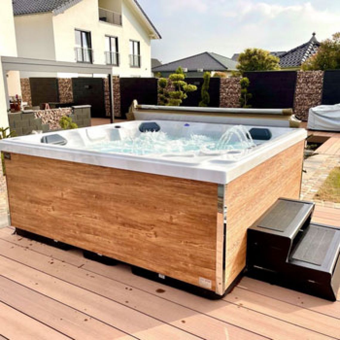 Wir beraten Sie zu Ihrem Wunsch-Whirlpool, kümmern uns um den kompletten Lieferablauf, bis dass Ihre neue Sprudelbütt bei Ihnen auf dem finalen Platz steht. Auf Wunsch führen wir mit Ihnen die Erstbefüllung durch, nehmen das Gerät in Betrieb und geben eine ausführliche Einweisung.
